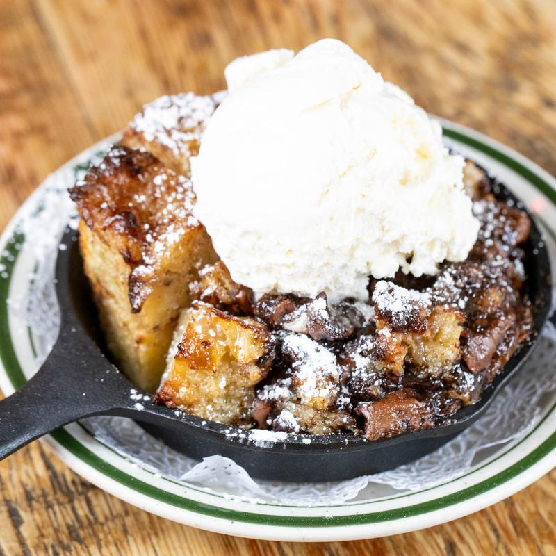 Nutella marshmallow bread pudding, wood fired, Jane's vanilla ice cream