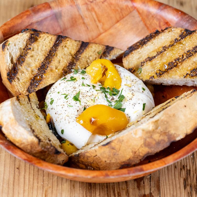 Ricotta, mozzarella, fresh garlic, thyme, chili, olive oil.